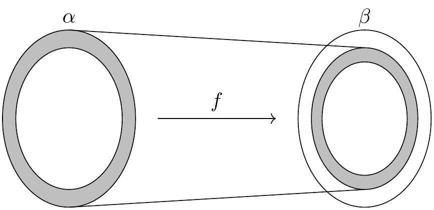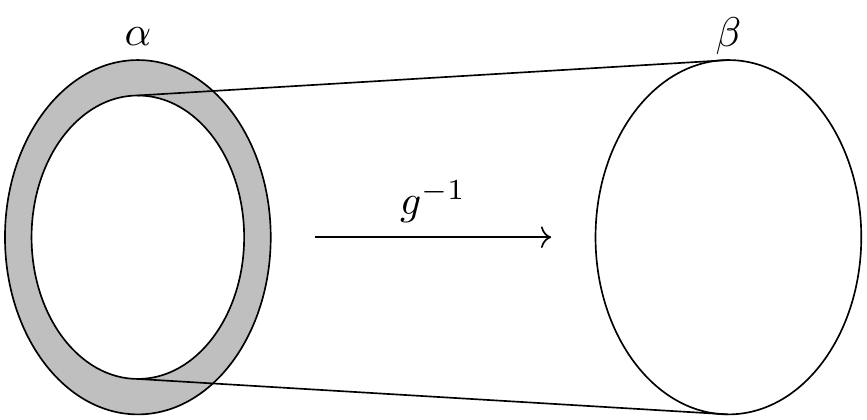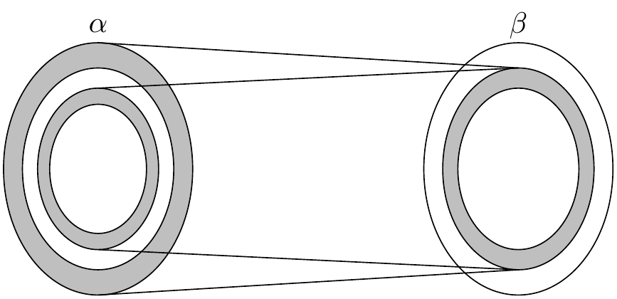 The argument for surjectivity is even easier. Given \(y\) in \(\beta\), we consider two cases, depending on whether \(g(y)\) is in \(A\). If it is, it can’t be in \(S_0\), the outermost ring, because by definition that is disjoint from the image of \(g\). Thus it is an element of \(S_{n+1}\) for some \(n\). This means that it is of the form \(g(f(x))\) for some \(x\) in \(S_n\). By the injectivity of \(g\), we have \(f(x) = y\). In the case where \(g(y)\) is in the complement of \(A\), we immediately have \(h(g(y))= y\), and we are done.