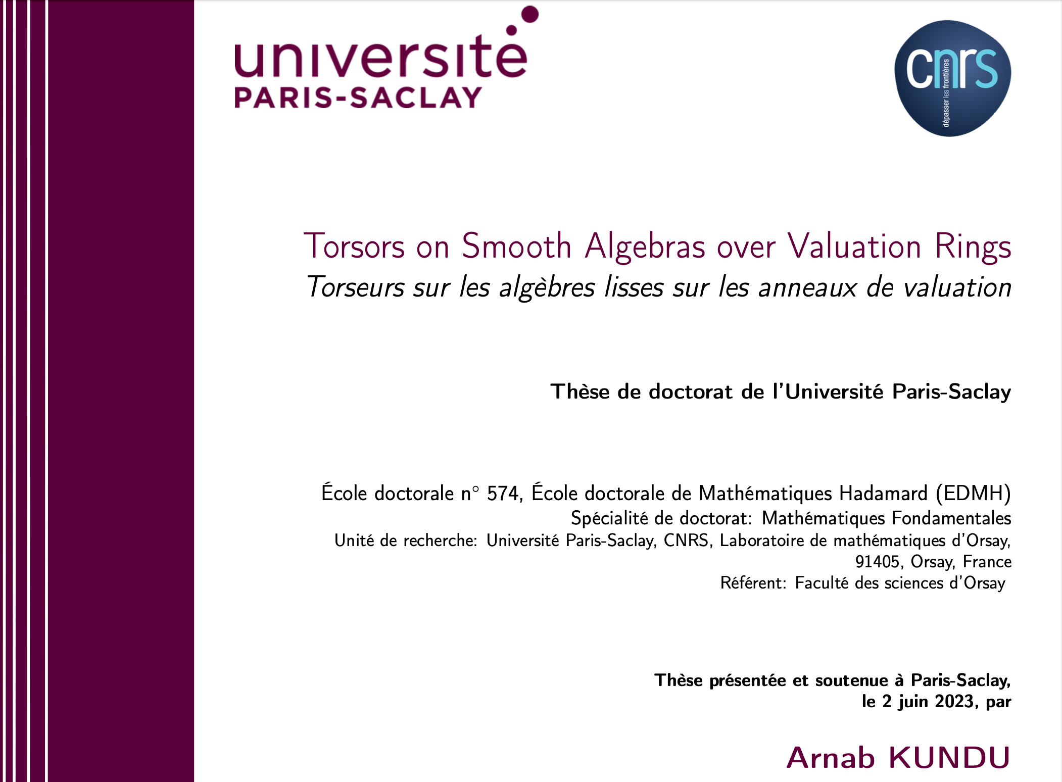 Anyone interested in Mathematics is welcome to attend my thesis defence which will take place on Friday 2nd June 2023 from 2:30PM at the Salle 3L15*.